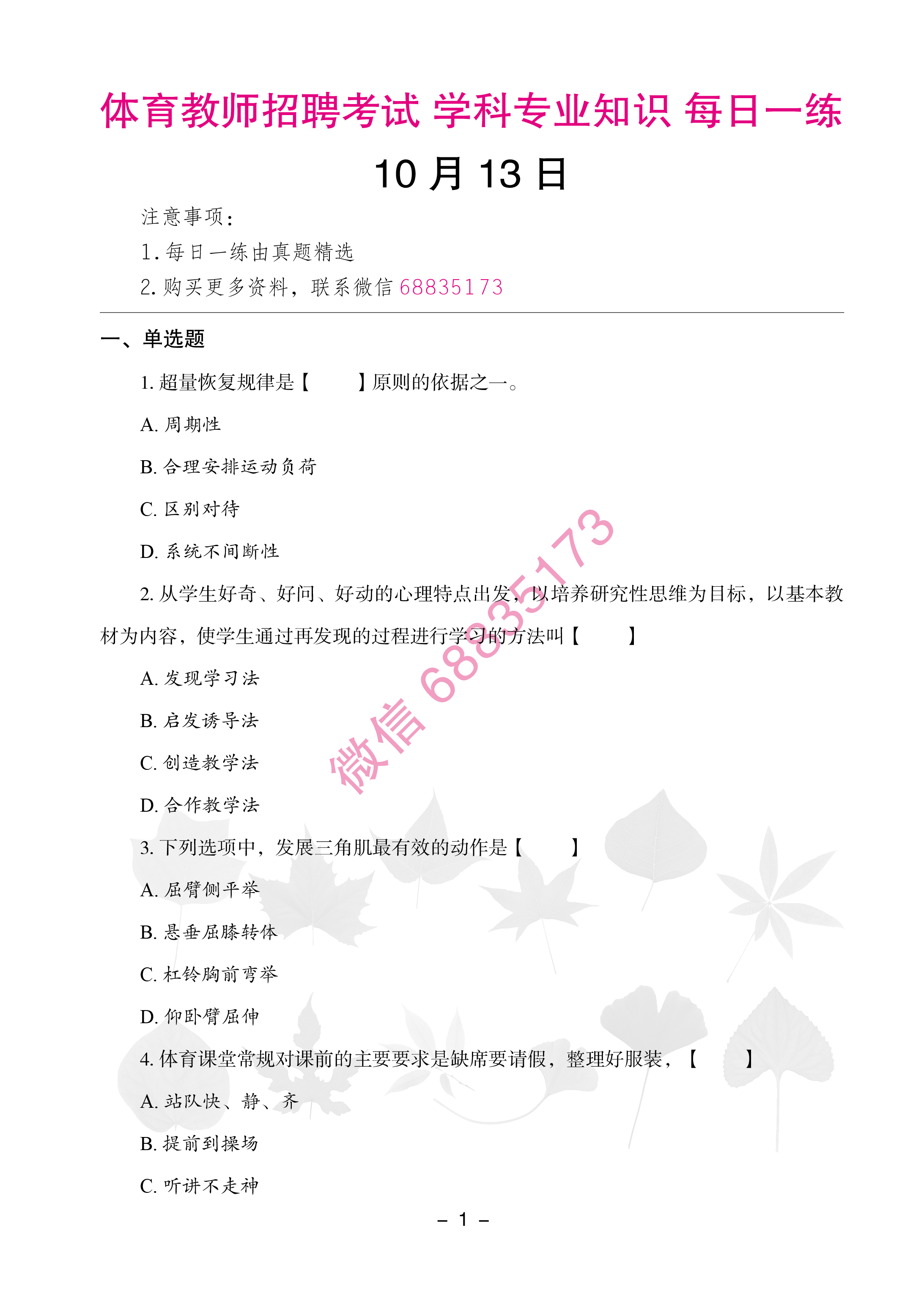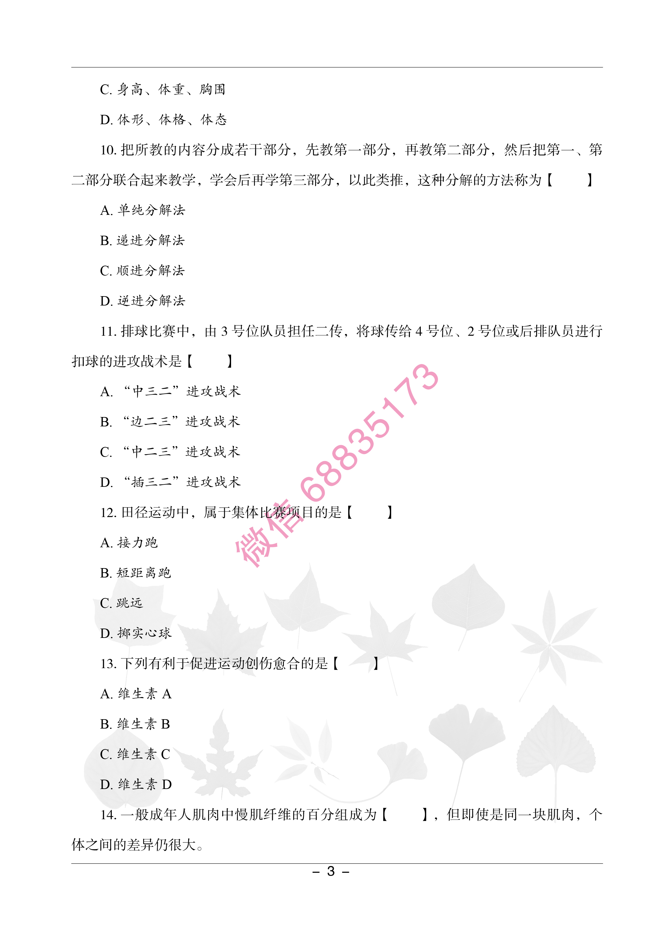 体育教师考编/招聘考试真题试卷学科专业知识每日一练10月13日