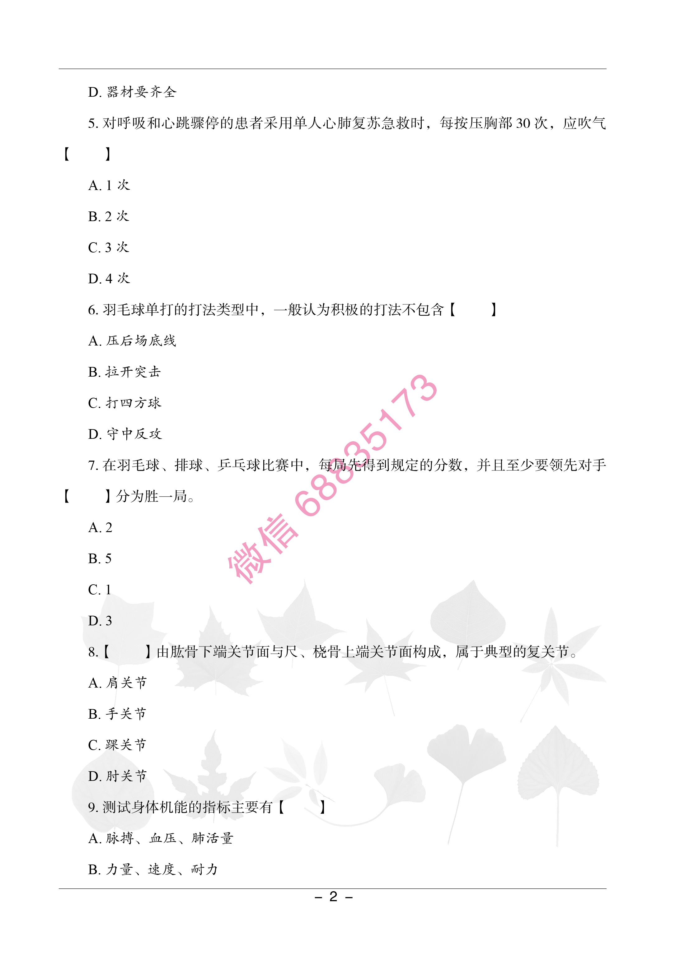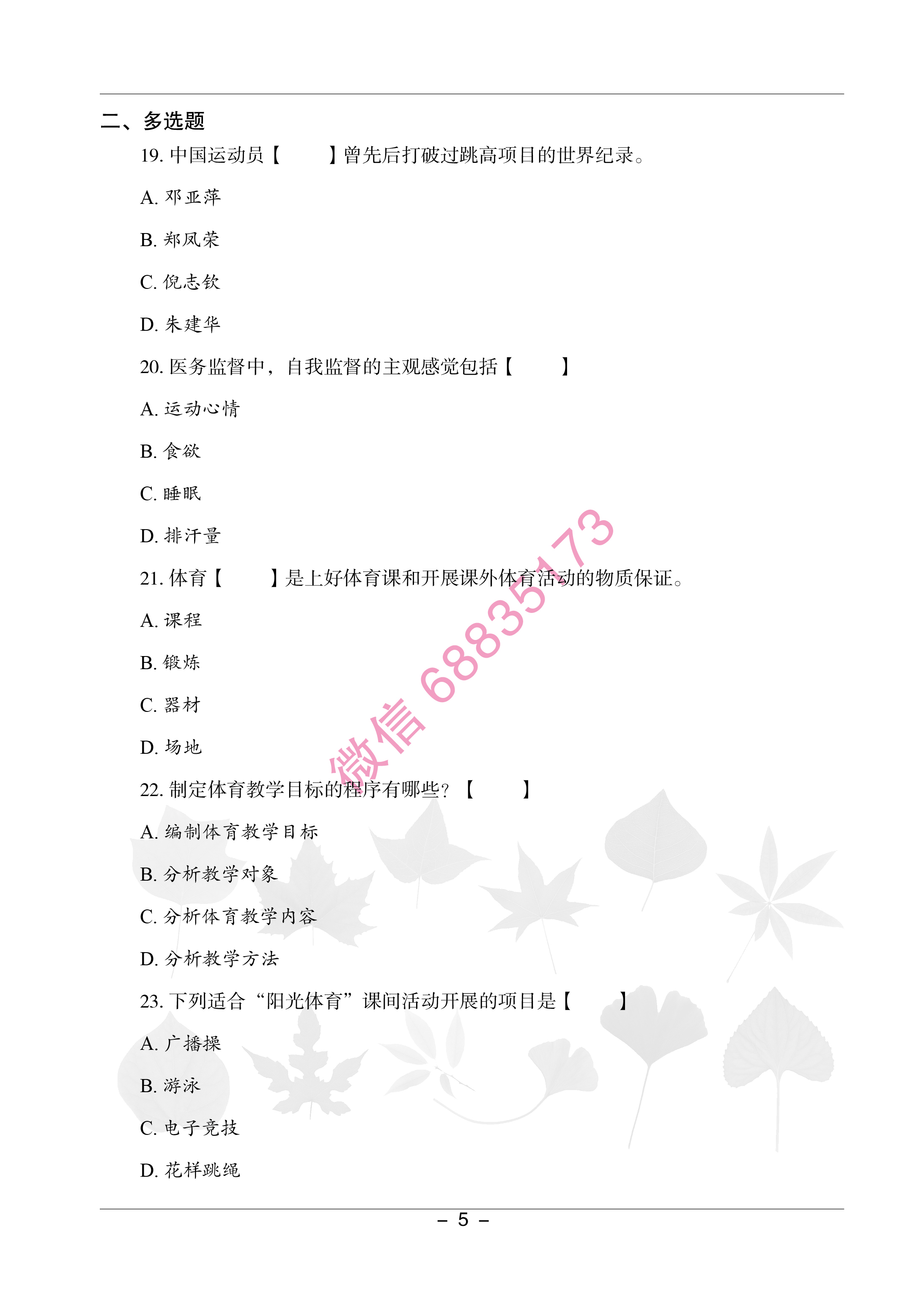 更多内容,关注微信公众号:体育高分题库